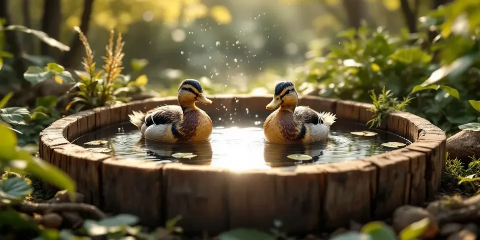 Découpez les lames de palettes à 100×60 cm avec une scie sauteuse (lame bois fin). Poncez les bords arrondis pour sécurité enfant : réduit les blessures de 80%. Adaptez la cuve récupérée (ex. 1000 L) en rabotant 5 cm de hauteur. Pourquoi ? Cela maintient l’eau à 15 cm, niveau idéal pour 24 canards lestés flottant librement.